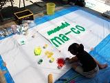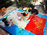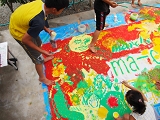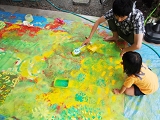 子どもも大人も、無心になって一つのキャンバスに取り組んで…