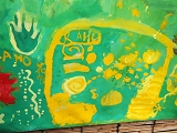 ただそれだけで、作品ってできるんだなぁ☆☆☆ 今回は、絵画教室の場所を提供して下さっている、「マルシェ・マーコ」の看板になりました。