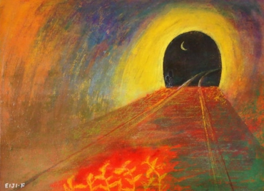 「復旧への轍」 P8号2012 アクリル・岩絵具・ソフトパステル/キャンバス〈第25回上野の森美術館 日本の自然を描く展 入選 〉